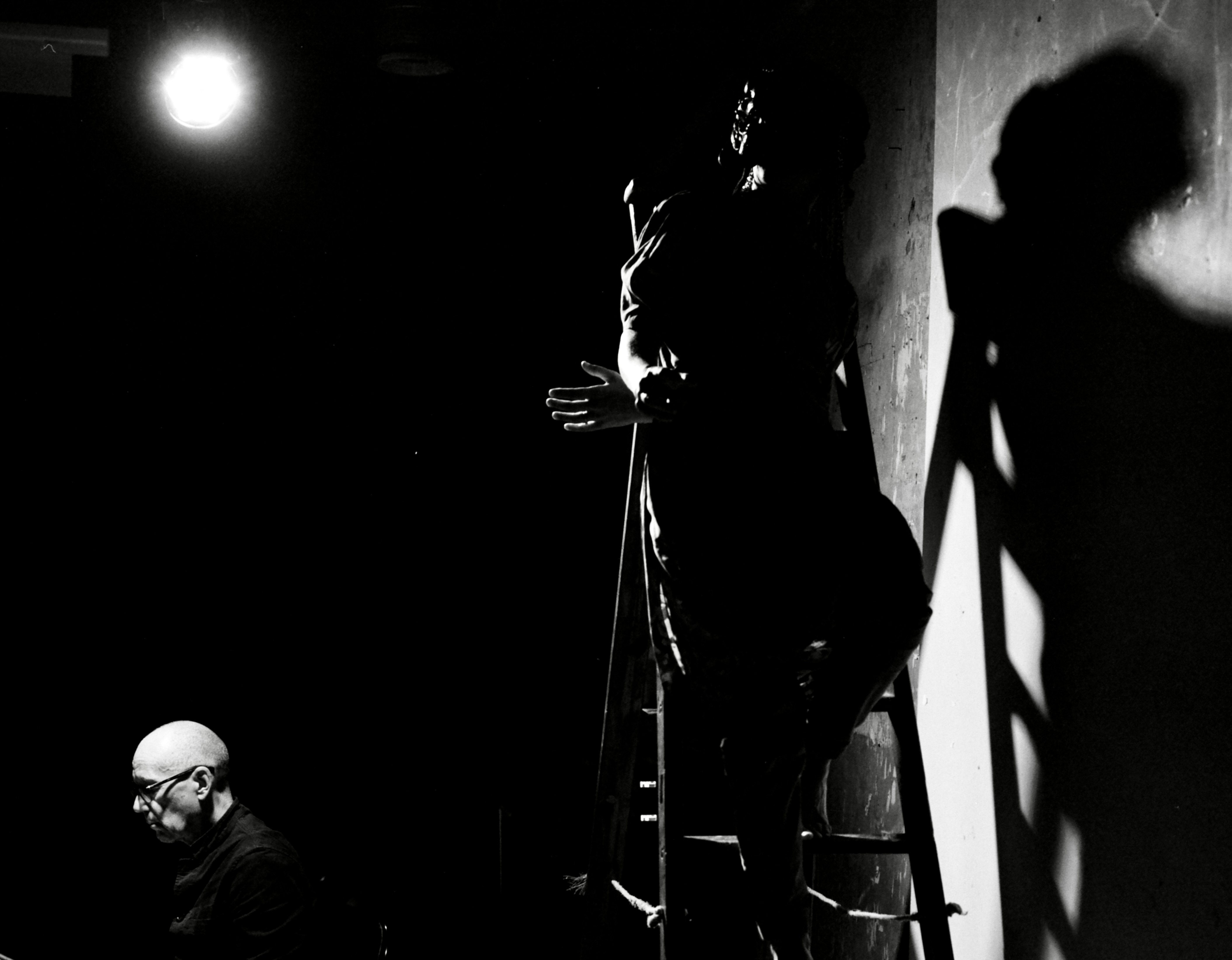 Then in early 2023 I met Ania Psenitsnikova. She had extensive expertise in body work of various kinds and we both had experience with performance art and Butoh dance but identifying with any specific style was not the point. Immediately we began discussing ideas about performance that embraced a wider definition of listening, not just the ear but the whole body attuned to the speaking of the world. How was it possible to enter a space and leave no trace, we asked ourselves? Sound, yes, but sound is frequently a pollutant. Our duo performances under the name of Moreskinsound became an intensive examination of how collaborative listening (in its expanded sense) – through microsound, stillness, slowness, silence, non-intentional movement, materials, objects, light and shadow – intensifies and sensitizes our sense of self in relation to the phenomenal world.